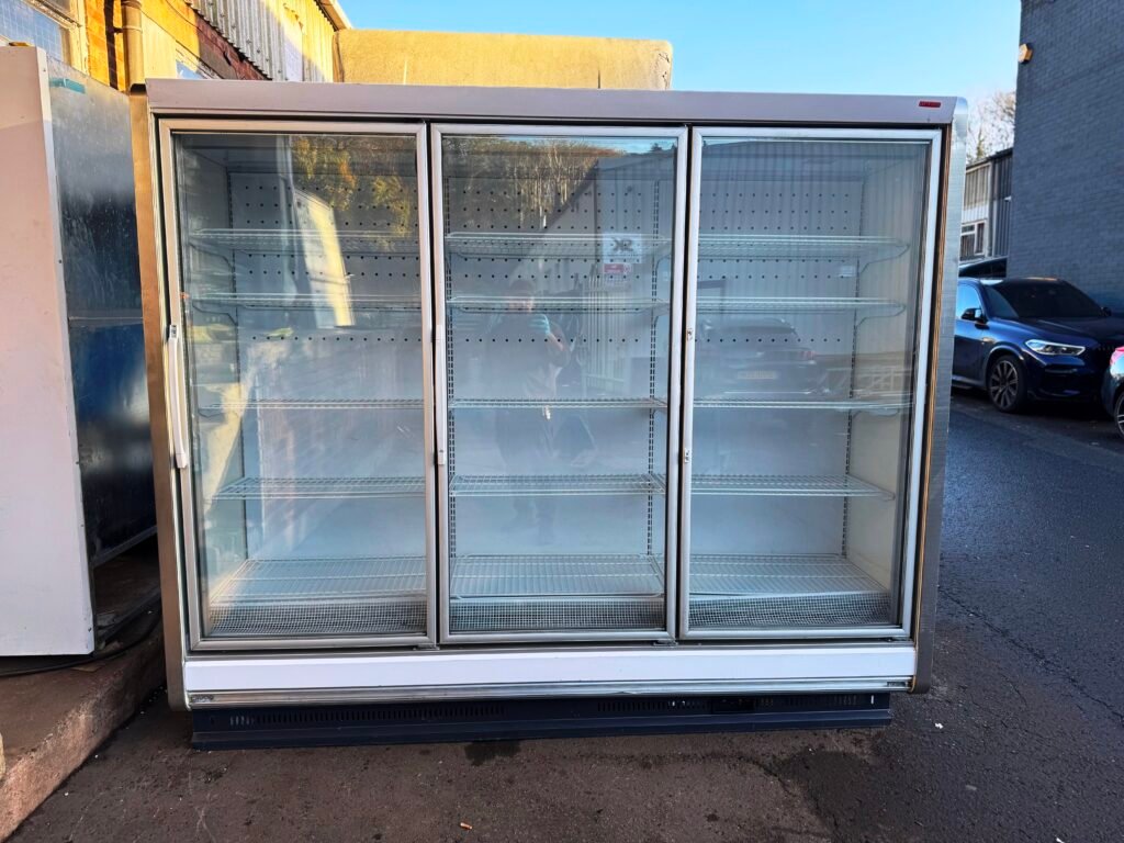 ARNEG COMMERCIAL 2.4M 3 DOOR REMOTE FREEZER – 2.4M WIDE- LIKE NEW CONDITION – OUTSIDE COMPRESSOR MADE IN ITALYVERY GOOD
